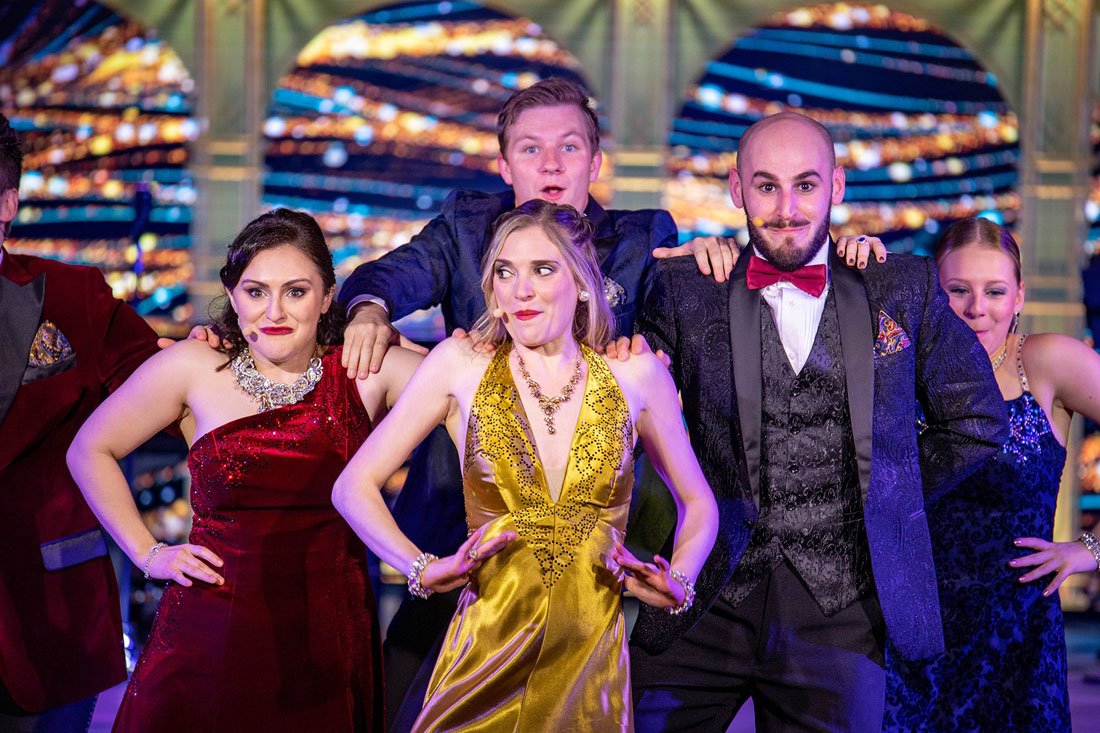 En su Looking Glass lounge & bar tendrás el mejor salón de observación que puedes imaginar. Con sus enormes ventanas panorámicas, de día encontrarás una exhibición de esculturas hechas de vidrio Murano, y de noche se transforma en un night club con cómodos sofás, ten por seguro que no lo visitarás una sola vez. Si buscas un ambiente más animado, el Mosaic Café y el Discoveries Lounge & Bar son perfectos para ti. Si de entretenimiento se trata, el Cabaret Lounge & Bar es el lugar perfecto para disfrutar de musicales, comedias y todo tipo de espectáculos. Para actividades más calmadas, está el área de juegos de mesa y la biblioteca donde participarás en divertidos pasatiempos.