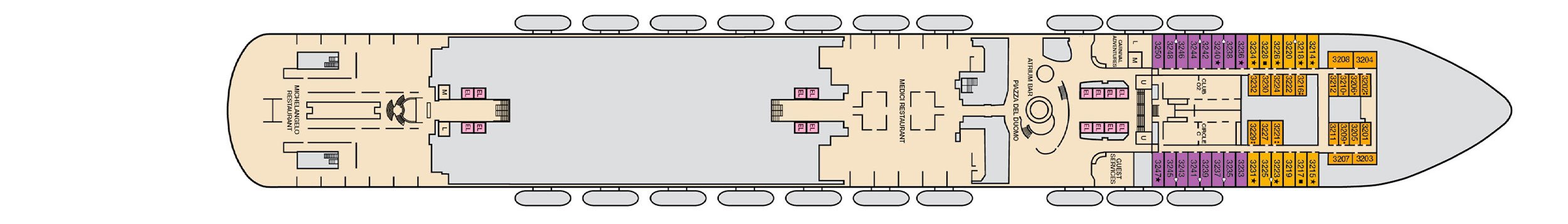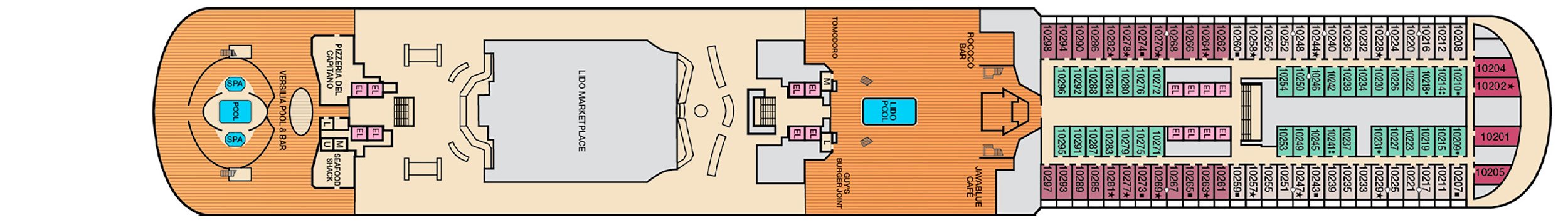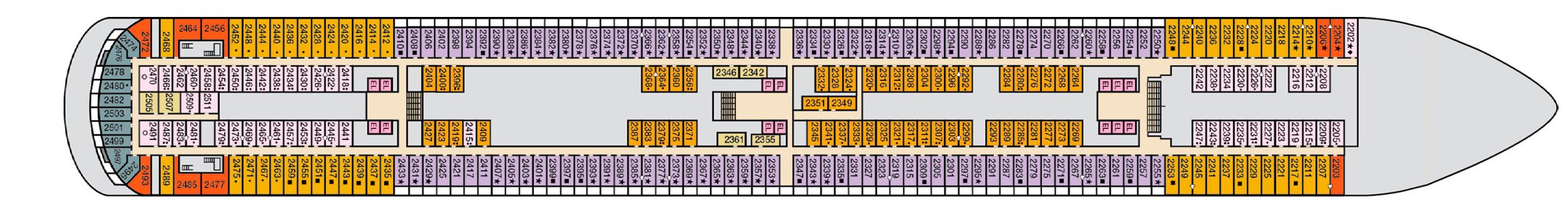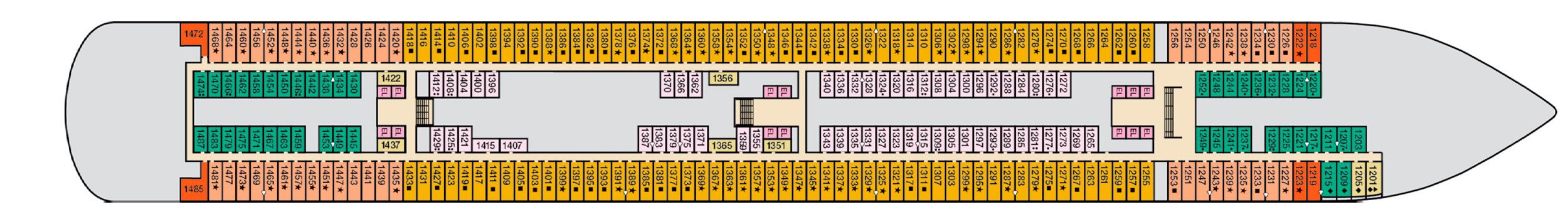 Cubierta(s): Deck 6 , Deck 7 , Deck 8 , Deck 9 , Deck 10 , Deck 11 , Deck 14