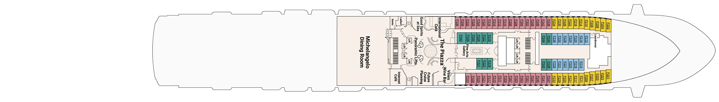 Cubierta(s): Deck 8 , Deck 9 , Deck 10 , Deck 11 , Deck 12 , Deck 14