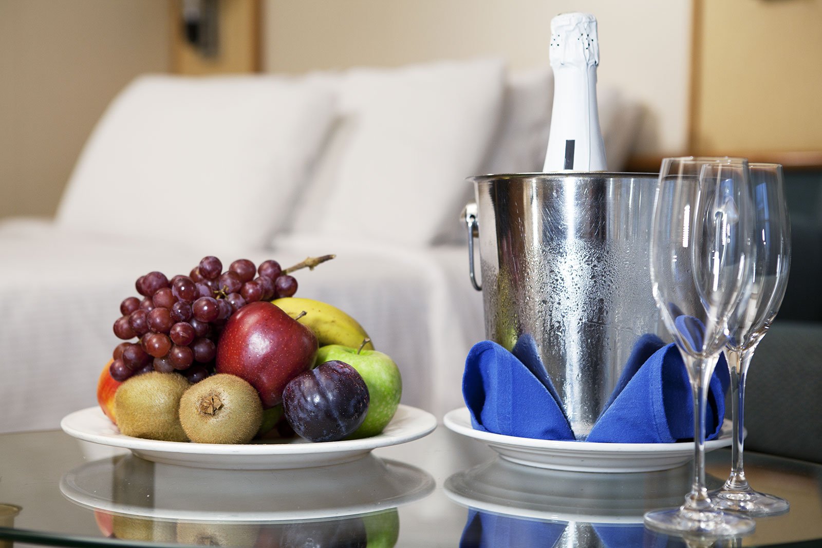 Cuentan con una capacidad de 1 a 3 personas. Se encuentran localizados en las cubiertas 2, 3, 4, 5, 6 y 7 y, están decorados en tonos claros para favorecer la relajación y el descanso. Además de una cama de matrimonio convertible en dos de 80x200 y una litera, estas cabinas están equipadas con cuarto de baño, tocador, televisión, caja de seguridad y secador de pelo.Tu camarote interior con todas las comodidades y ventajas de las cubiertas superioresLos camarotes Interiores Superiores están localizados en la parte intermedia del barco, dándote fácil acceso al Teatro, el Marbella Casino Merkur Mare, la discoteca Luz de Luna y otros sitios donde disfrutar de tu tiempo libre.Características:-Medida de cabina: 11,05 m2-Medidas de cama: 200x80cm-Dispone de: Cama de matrimonio (convertible en 2) y litera, cuarto de baño, tocador. televisión, caja de seguridad y secador de pelo-Voltaje cabina: 220V -